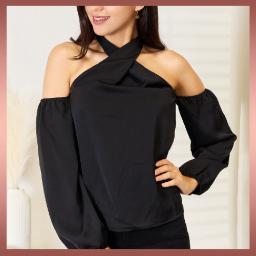 Perfee Grecian Cold Shoulder Long Sleeve BlouseSuccess